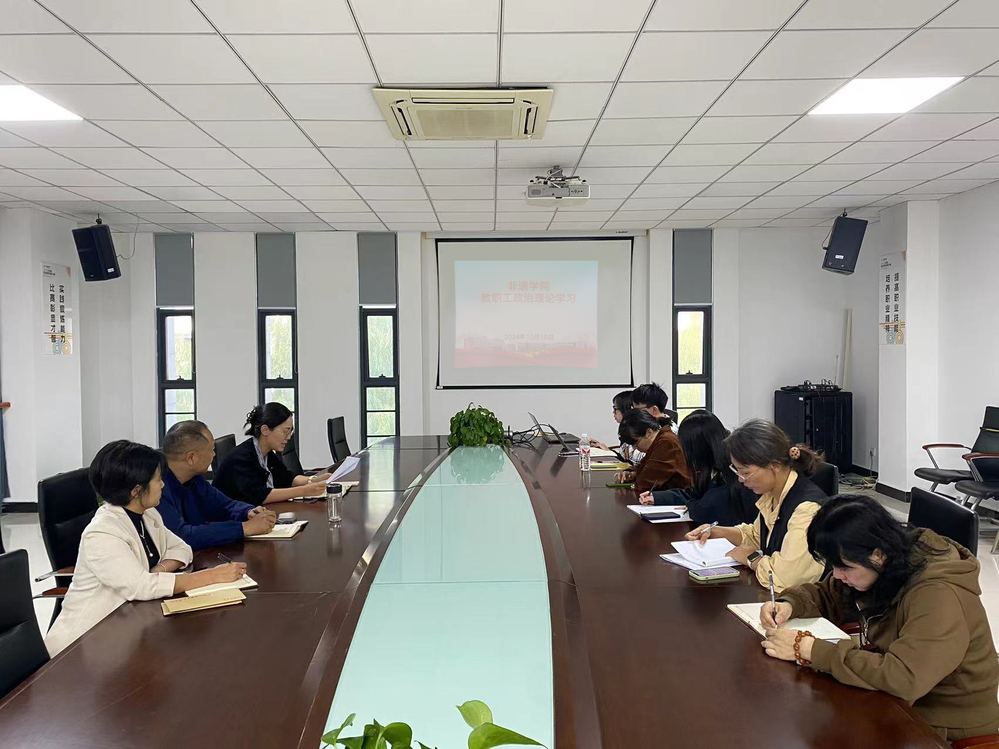 10月10日下午,非遗学院在302会议室召开教职工政治理论学习会议。本次学习会围绕“深入学习领会习近平总书记关于推进中国式现代化的重要论述”这一主题展开,旨在提升教职工的政治素养和理论水平,为非遗学院的未来发展注入新的动力。全体教职工参与会议,学院党总支副书记刘璐主持会议。