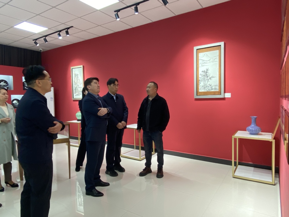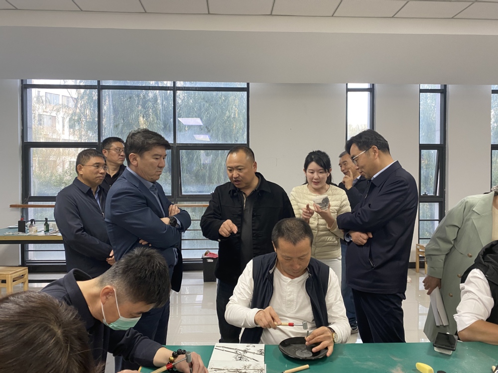 调研组实地重点参观了我校瓷刻馆,实地观摩了瓷刻作品陈列与教学成果展示,详细考察了非遗学院的实训教学场所。市领导与正在参与国家级非遗传承人研修培训计划的学员及在校学生亲切交流,深入了解课程设置、技艺传承与创新实践等方面的情况。