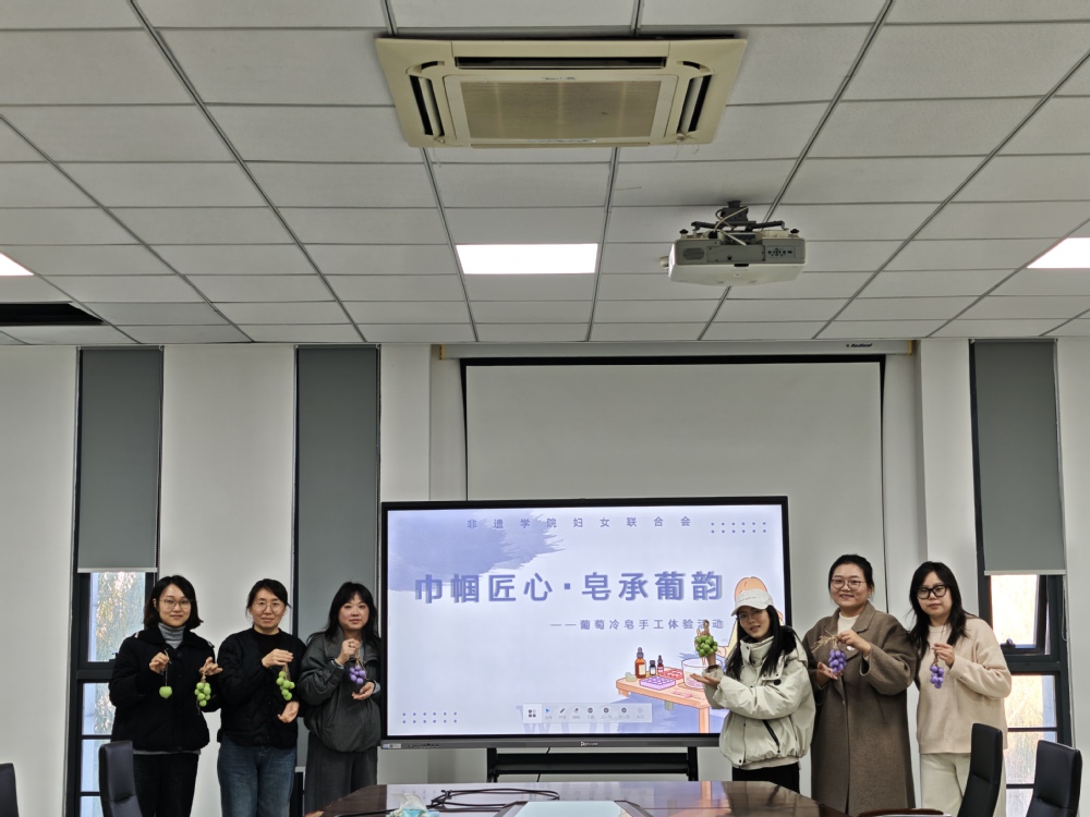 2025年12月3日下午,由非遗学院妇女联合会精心策划的“巾帼匠心・皂承葡韵——葡萄冷皂手工体验活动”在学院非遗传承工坊圆满举行。来自学院女老师共计10余人齐聚一堂,在指尖劳作中感悟传统技艺魅力,以巾帼匠心传承非遗文化。